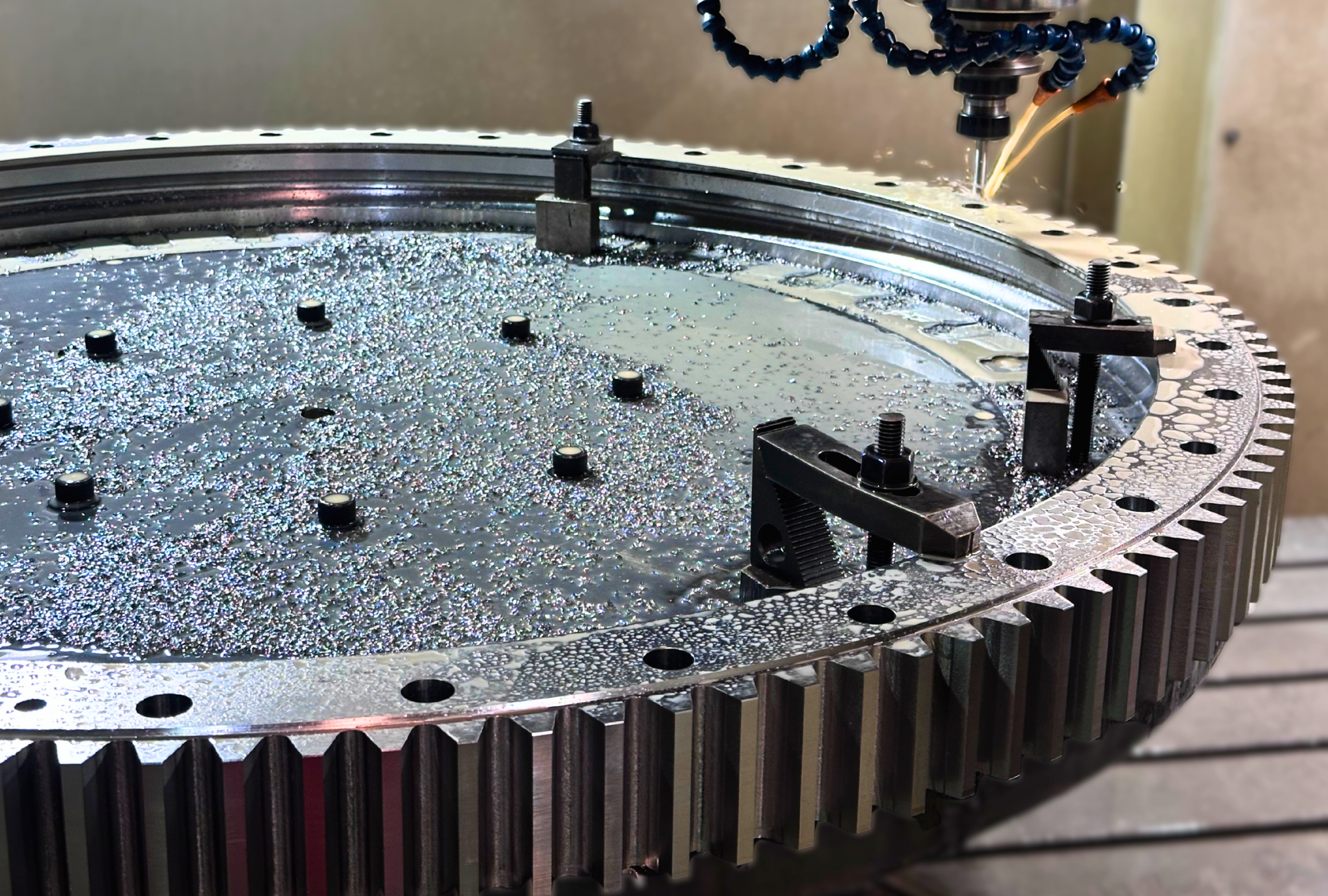Fabricado con procesos de soldadura, mecanizado de alta precisión en torno de volteo variable, montaje de corona y reductores con control de backlash.