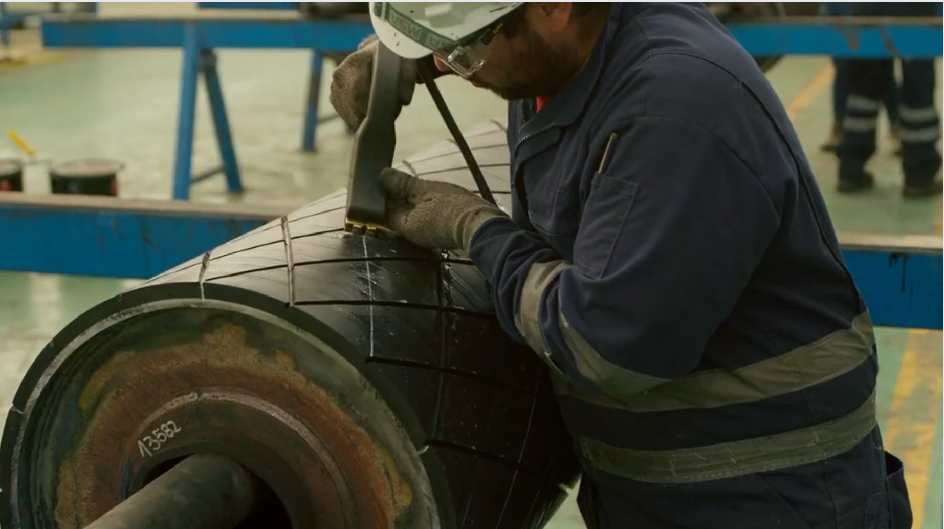 Fabricada con trabajo de mecanizado CNC, cilindrado, soldadura en arco sumergido, revestimiento en caucho cerámica, montaje de rodamientos y pruebas dinámicas